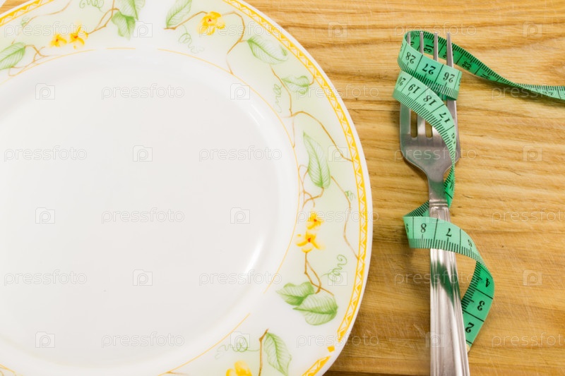 Пустая тарелка с сантиметровой лентой
