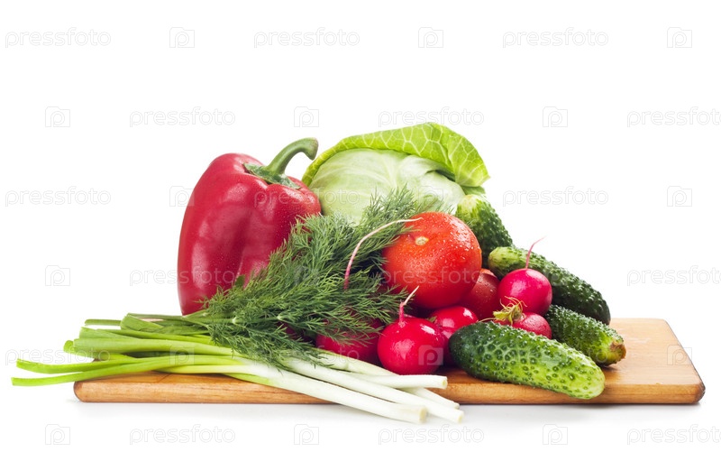 Свежие овощи на доске на белом фоне