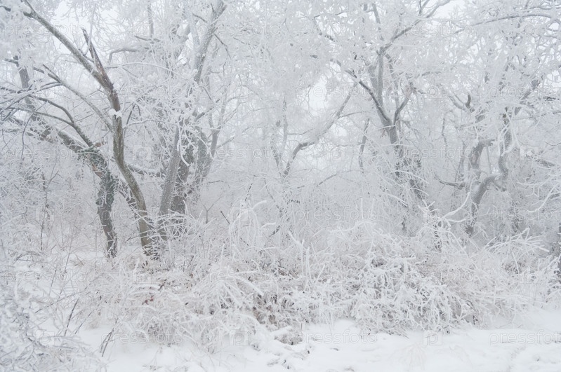 Лед на деревьях в парке