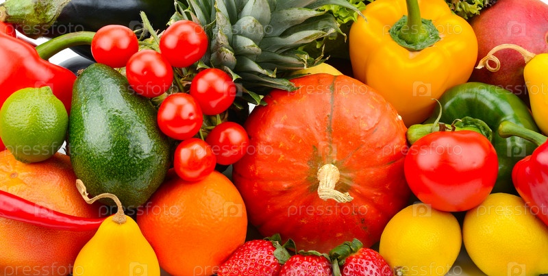 Набор овощей, фруктов и зелени