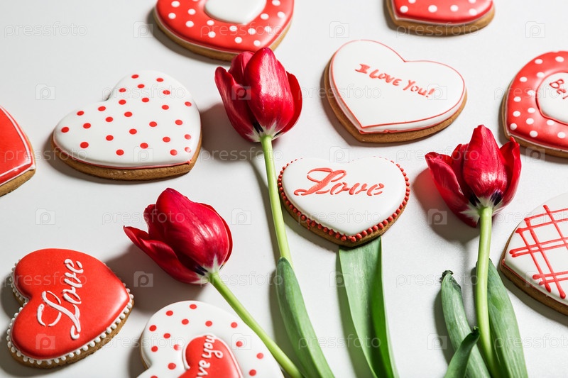 Тюльпаны и имбирное печень в форме сердца