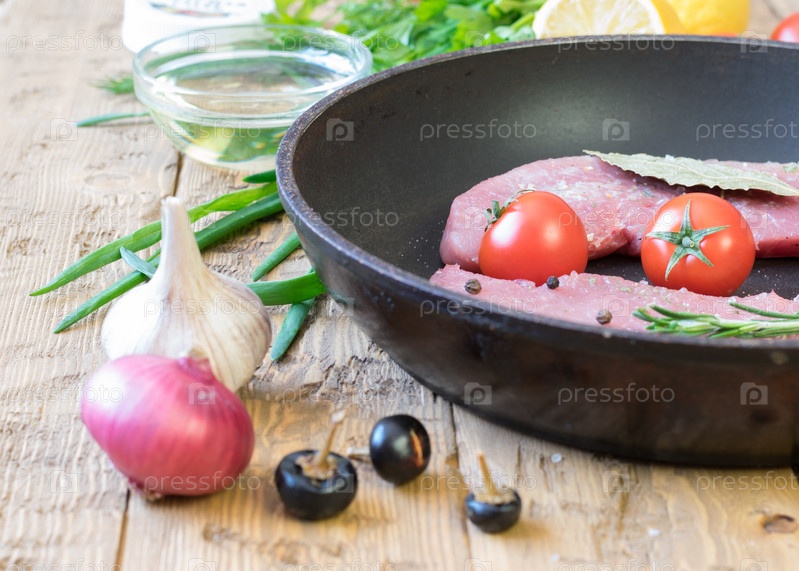 Сырая свинина на сковороде