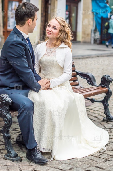 Молодожены на скамейке