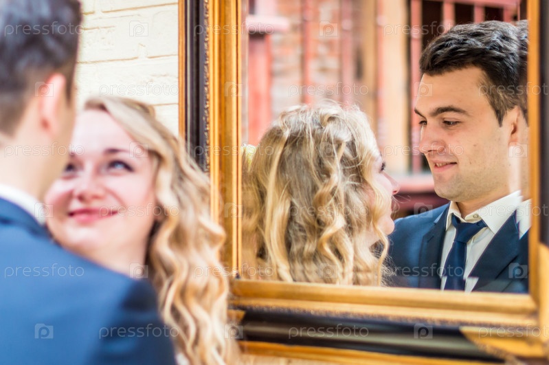 Молодожены возле зеркала