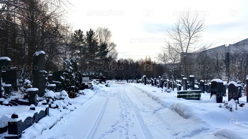 Городское кладбище в снегу