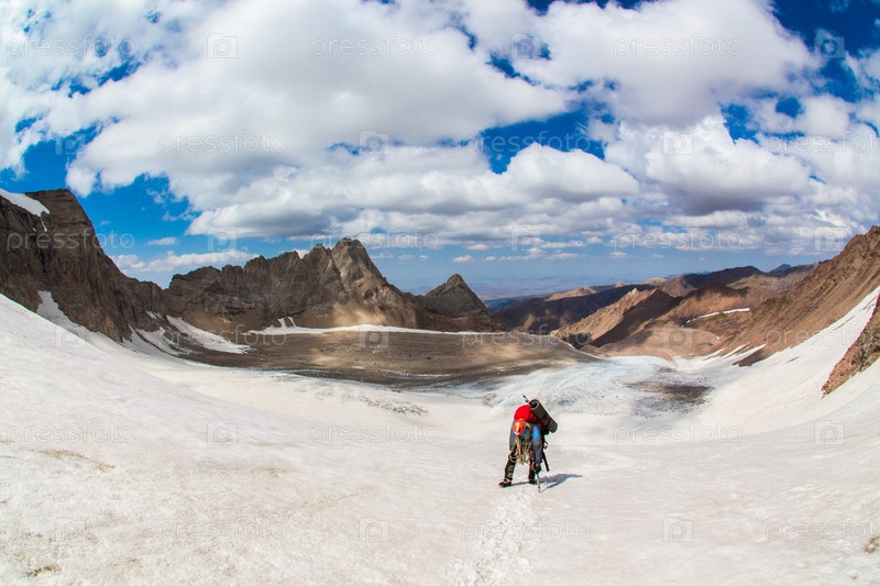 Альпинист на леднике на Тянь-Шане, Сайрам, Казахстан