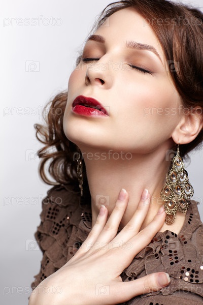Портрет красивой молодой женщины с закрытыми глазами