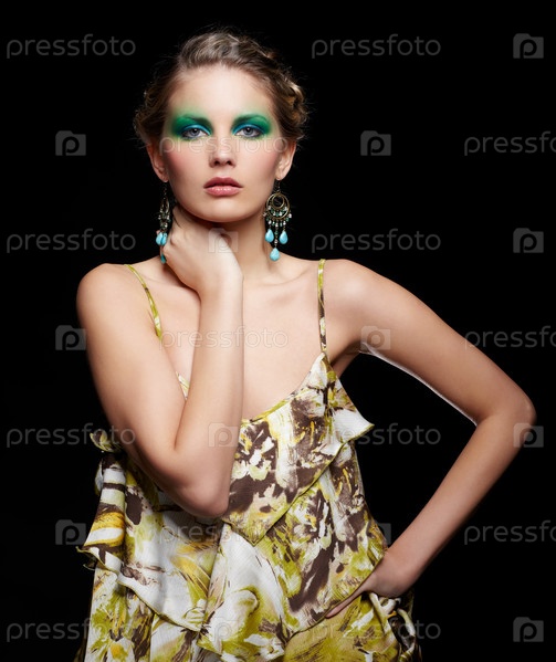 Портрет красивой молодой женщины с ярким макияжем