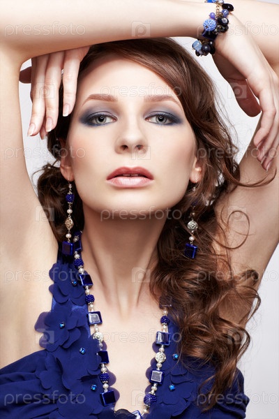 Портрет красивой молодой женщины в синем платье