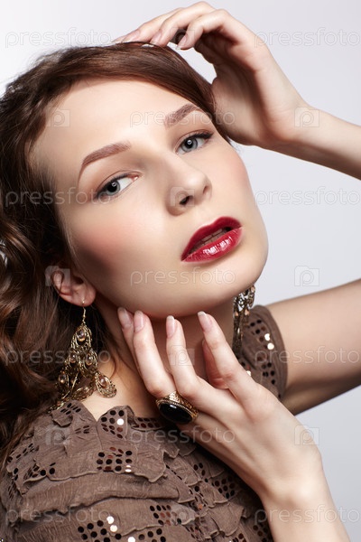 Портрет красивой молодой девушки на белом фоне