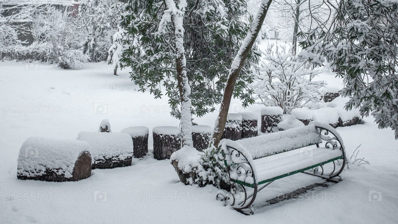Скамейка в зимнем парке