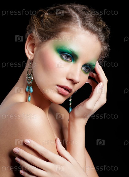 Портрет красивой молодой женщины с ярким макияжем