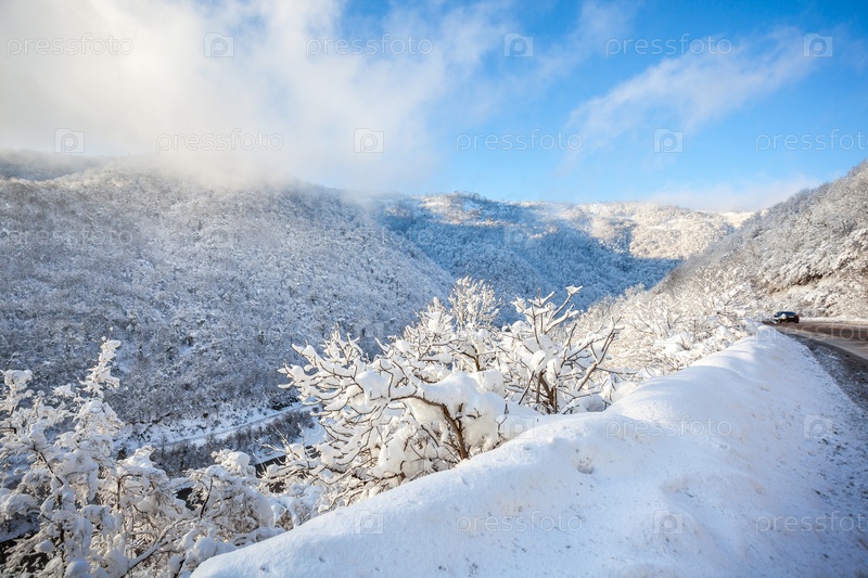 Горная дорога солнечным зимним днем
