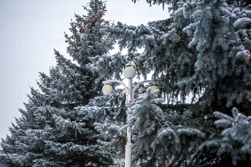 Сосны и уличный фонарь