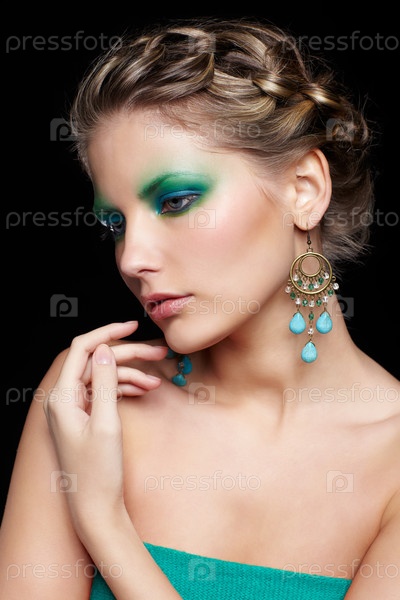 Портрет красивой молодой женщины с ярким макияжем