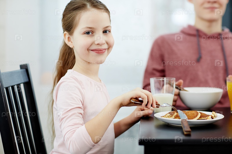 Красивая девочка за завтраком