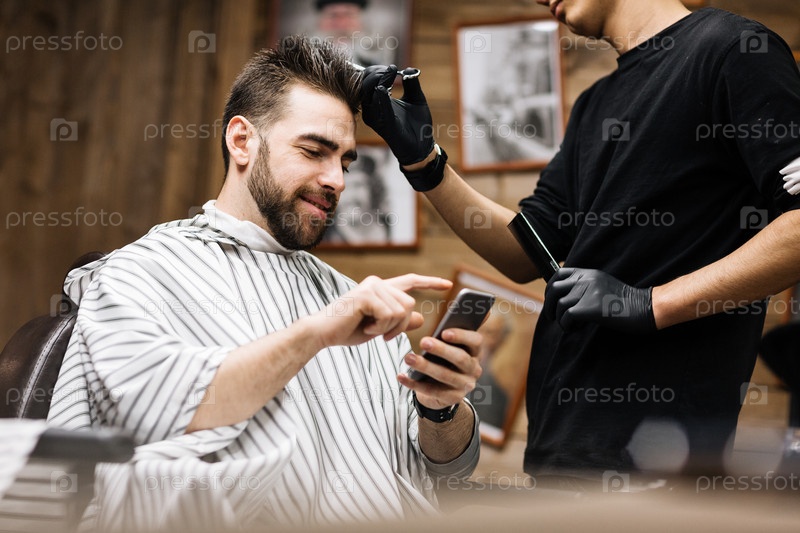 Клиент парикмахерской с телефоном