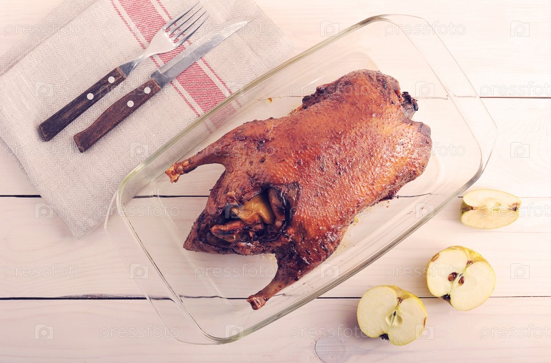 Жареная утка, фаршированная яблоками