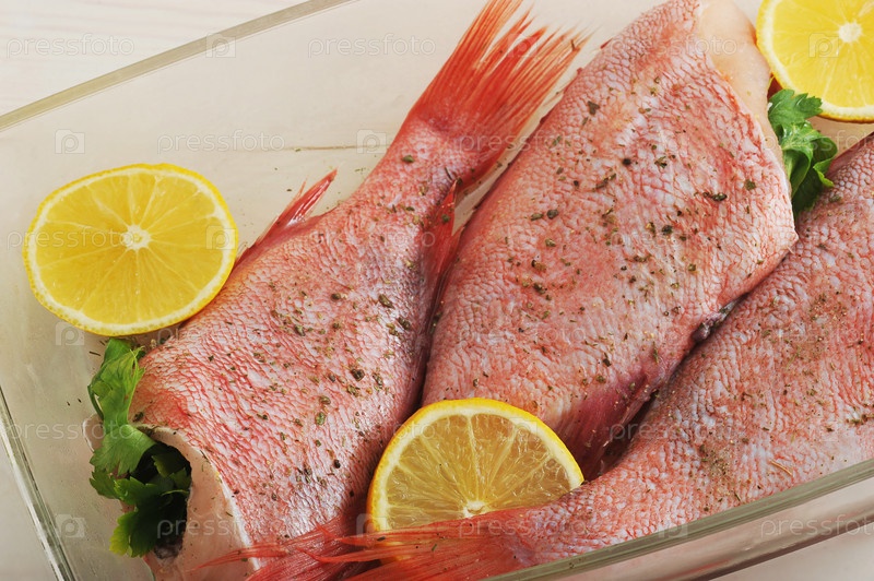 Сырой сибас с начинкой из петрушки и лимона
