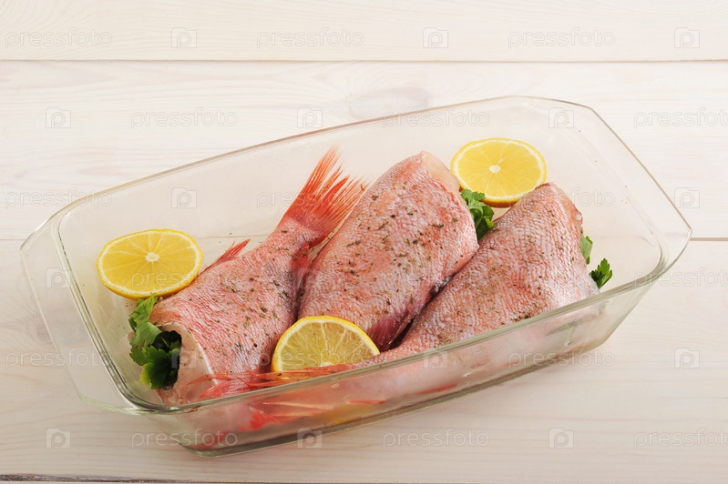 Сырой морской окунь с начинкой