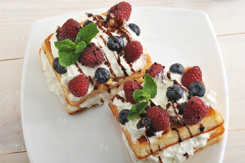 Бельгийские вафли с ягодами и сливками