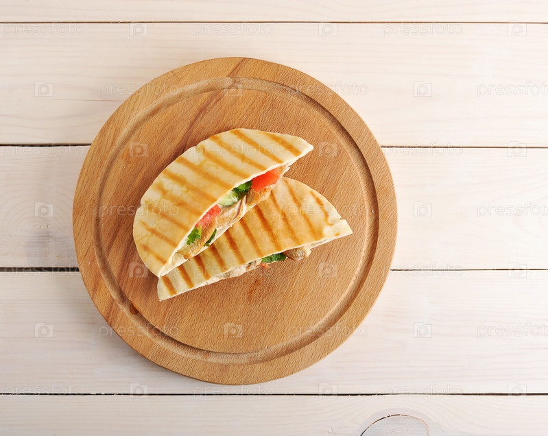 Пита заполнены с куриной грудкой, овощами и соусом