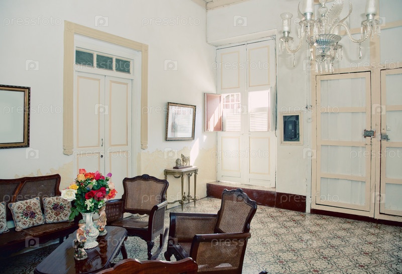 Старомодная комната в колониальном стиле в кубинской доме, Куба