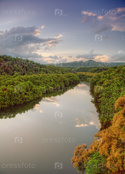 Красивый закат над тропической рекой