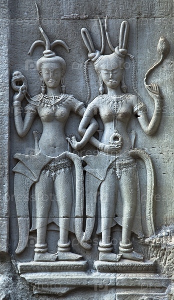 Фрагмент барельефа в древнем индусском храме, Камбоджа