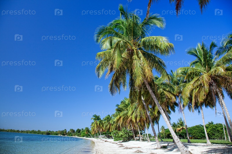 Тропический пляж с пальмами