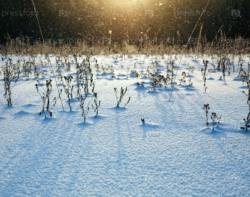 Заснеженное поле в лучах солнца