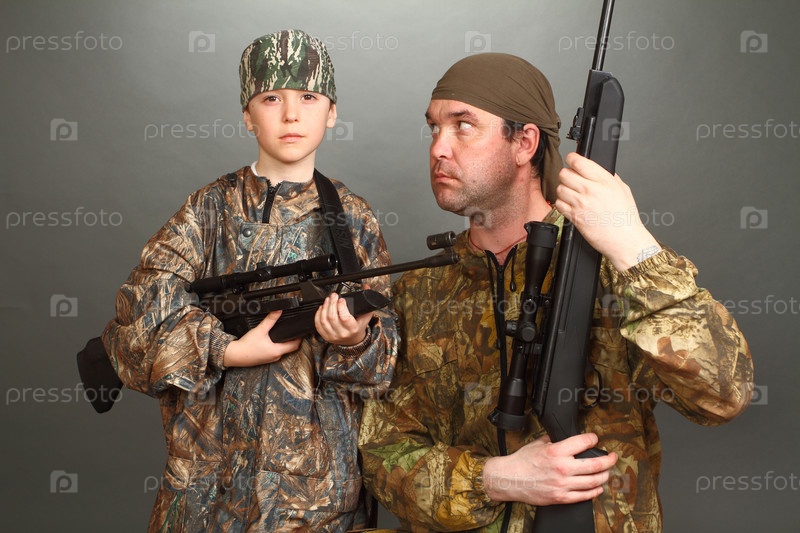 Отец с сыном в камуфляжной форме с винтовками