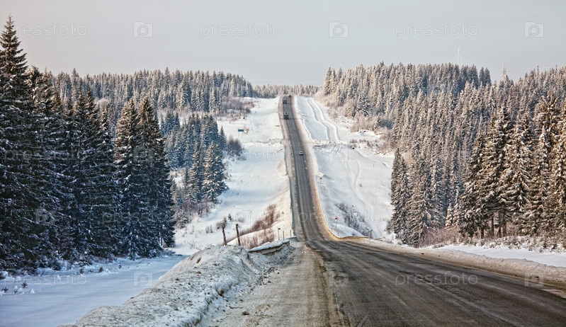 Зимний пейзаж с дорогой