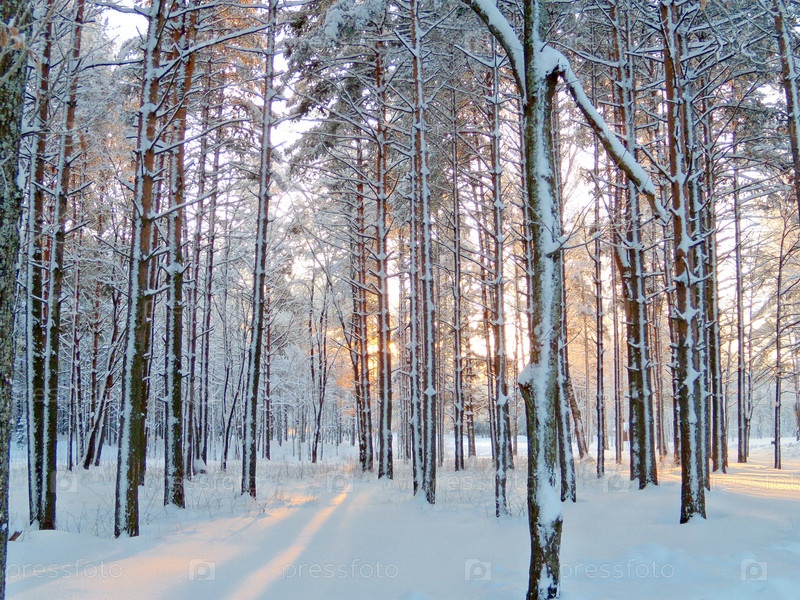 Закат в зимнем лесу