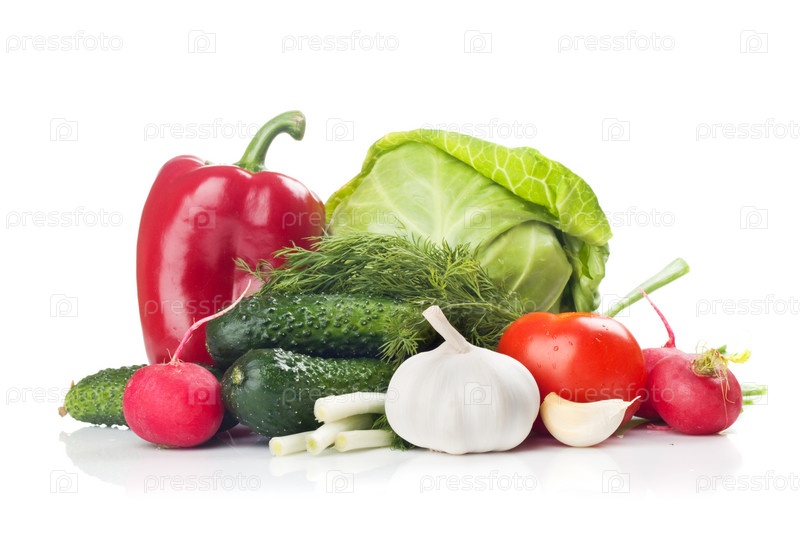 Свежие овощи на белом фоне