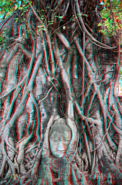 Каменная голова Будды в окружении корней дерева в храме Ват Пра Махатха, Аюттайя, Таиланд