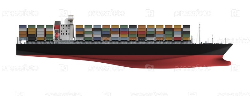 Изолированный контейнерный корабль над белым