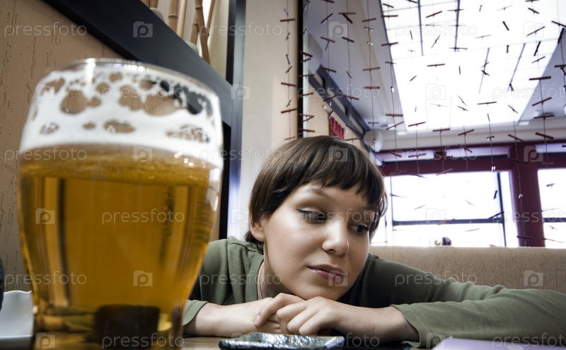 Грустная девушка в кафе
