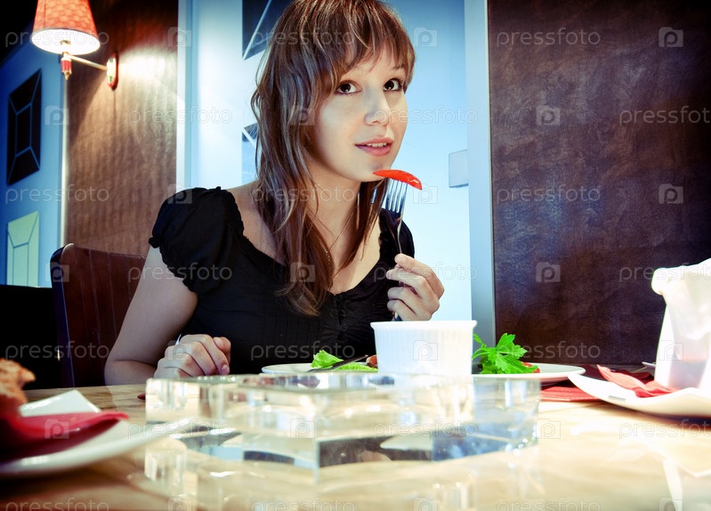 Портрет красивой девушки в ресторане
