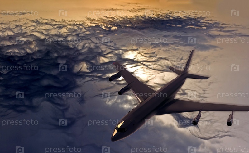 Самолет летит над облаками