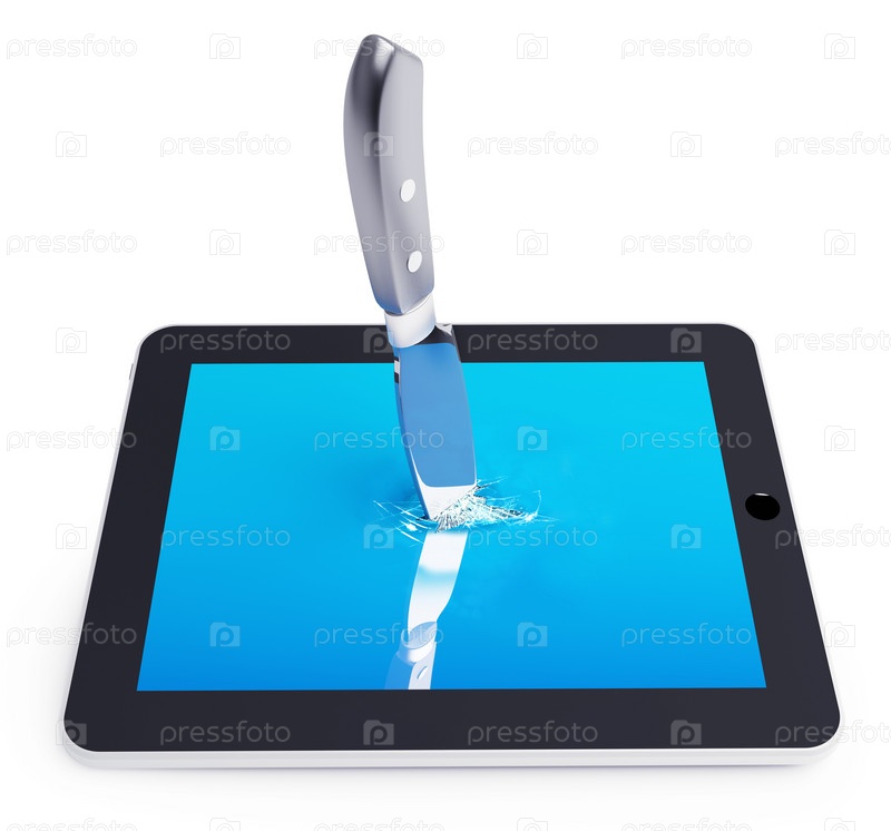 "Убийство" планшетного компьютера с помощью ножа