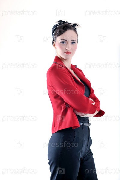 Красивая молодая женщина в костюме в стиле ретро