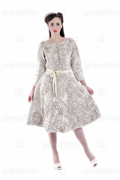 Красивая молодая женщина в платье в стиле ретро