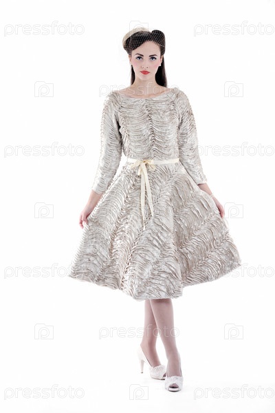 Красивая молодая женщина в платье в стиле ретро