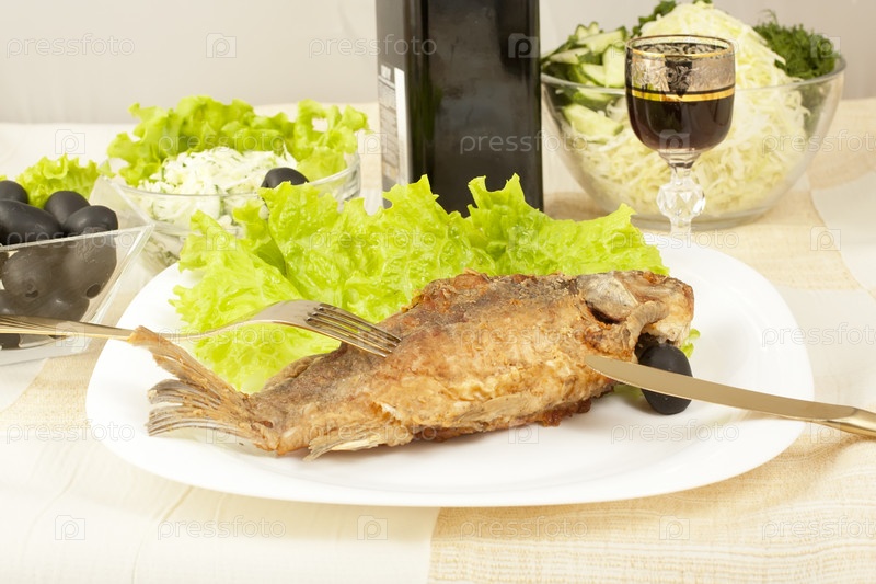 Жареный карп на тарелке