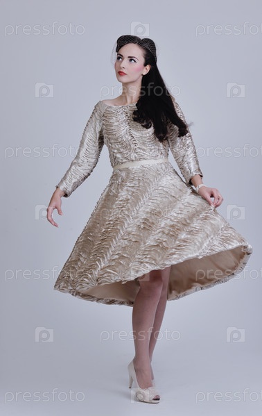 Красивая молодая женщина в платье в стиле ретро