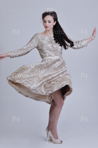 Красивая молодая женщина в платье в стиле ретро