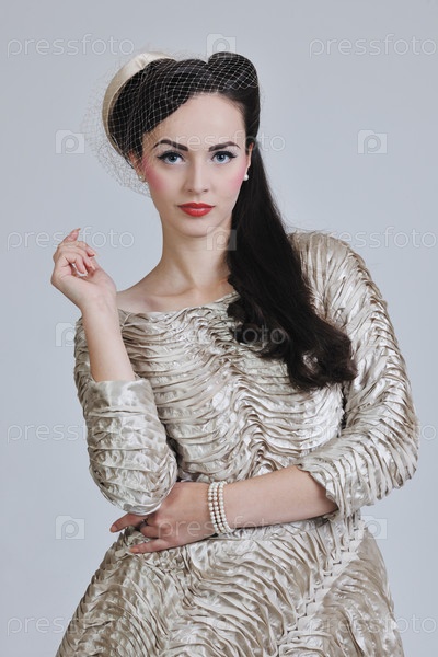 Красивая молодая женщина в платье в стиле ретро