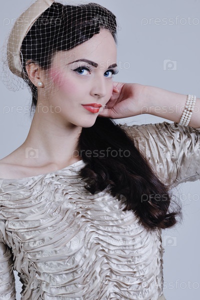 Красивая молодая женщина в платье в стиле ретро