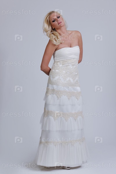 Красивая молодая невеста в свадебном платье в стиле ретро